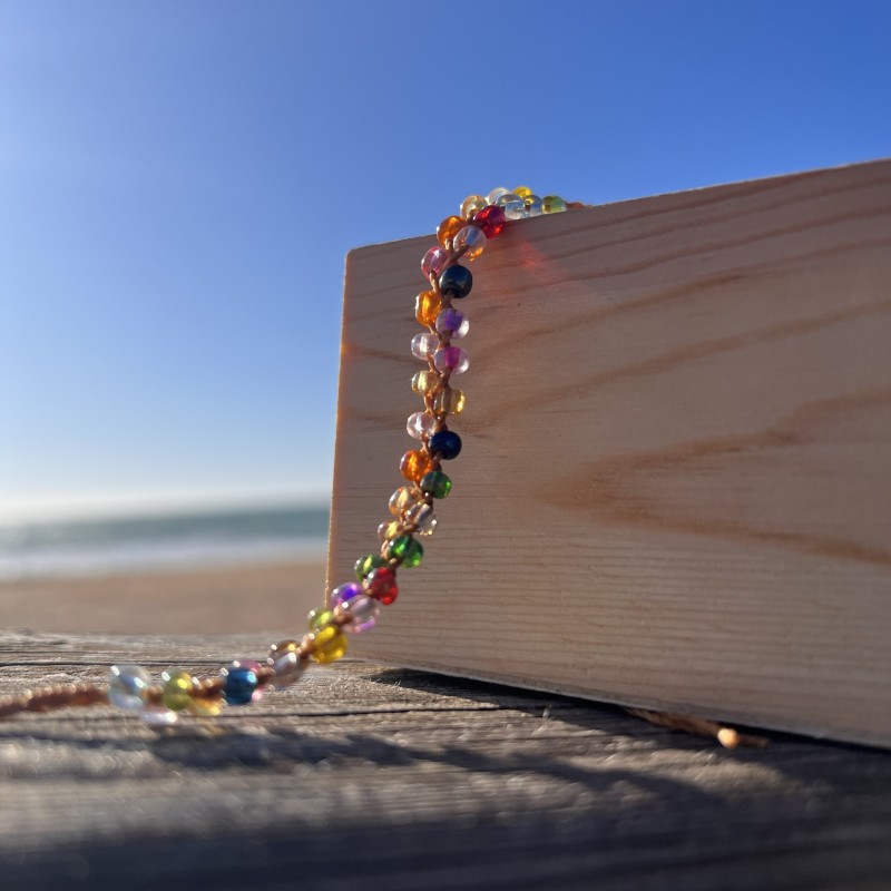 • Tobillera de cuentas multicolor e hilo encerado marrón o negro.